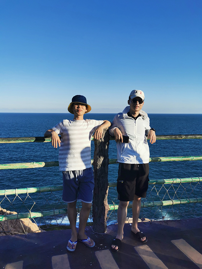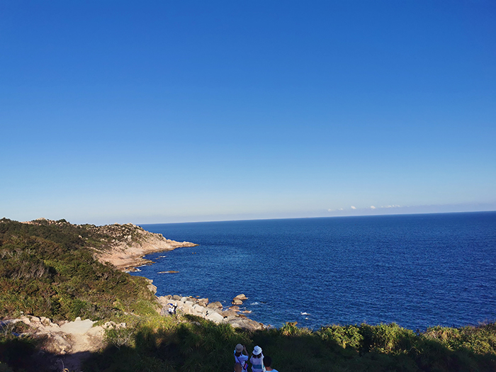 稍作休息后,下午3點(diǎn)多,我們游覽了觀景臺(tái)。這里三面環(huán)海,風(fēng)景如畫(huà)?;輺|的雙月灣,由兩片半月形灣畔形成,而這一壯闊美景,只有登頂大星山的觀景臺(tái)才能看到。駐足在雙月灣觀景臺(tái)的最前端,極目遠(yuǎn)眺,藍(lán)天、白云、大海,水天相接,令人心曠神怡。