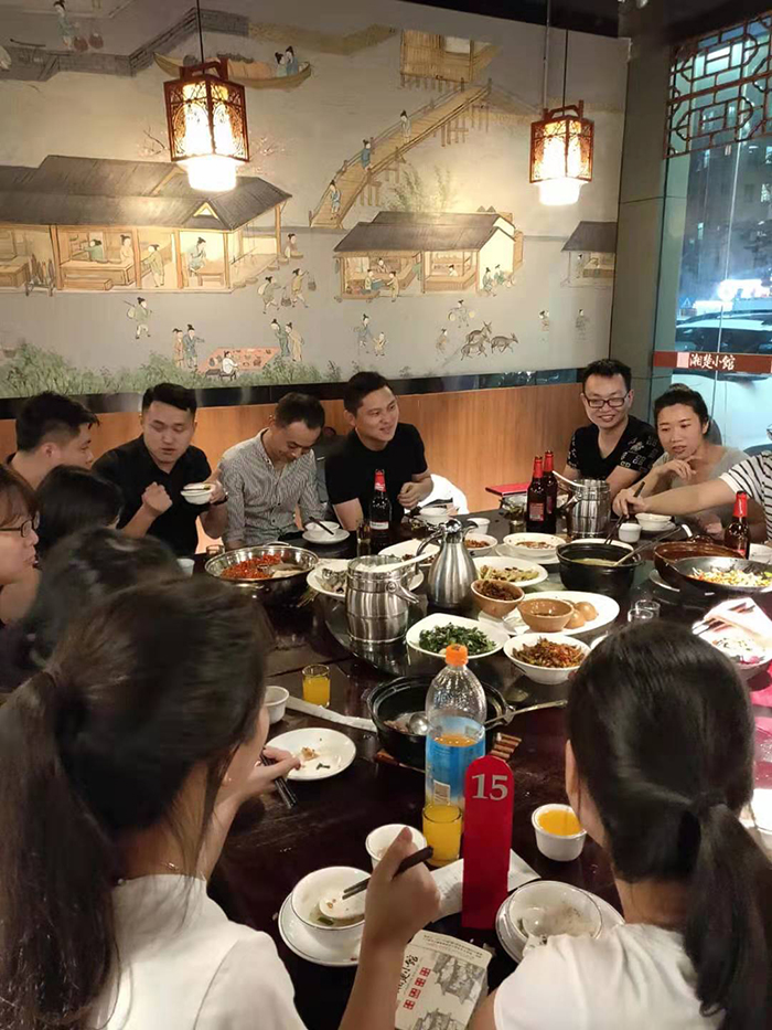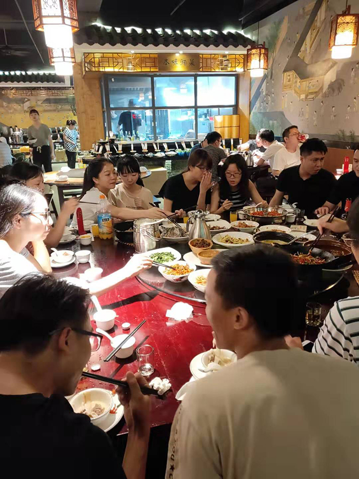 傍晚,公司所有員工一行來到湘楚小館,只見華燈璀璨,桌椅整潔,環(huán)境優(yōu)雅。我們自由落座,快樂滿滿地享受眼前的美酒佳肴,激情燃燒,暢談感言,互致祝賀,熱情洋溢的臉上像秋天綻放的菊花。隨著游總的到來,本次活動的晚餐也拉開序幕,由各部門新老員工互相介紹,公司領(lǐng)導(dǎo)也親切與每位新員工交談,進(jìn)行鼓勵。隨后游總跟大家嘮家常,講經(jīng)驗(yàn)讓大家感受到濃濃的家庭氣息,使整個聚餐充滿暖意。席間,同事們彼此交流起各自工作、生活中的趣事,氣氛十分熱烈,平日里交流有限的同事間頓生起濃厚的友誼。俗話說,辛苦討個快活吃,高興高興,快樂快樂……