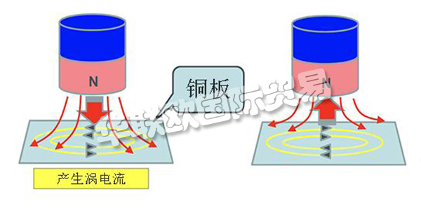 旋轉(zhuǎn)磁場(chǎng)和固定的銅板發(fā)生兩個(gè)渦電流,兩個(gè)渦電流合成發(fā)生感應(yīng)電流。感應(yīng)電流在磁場(chǎng)中發(fā)生電磁力,發(fā)生電機(jī)扭矩。