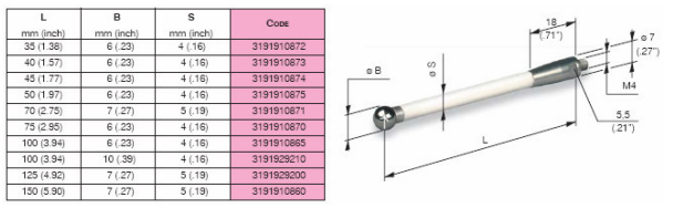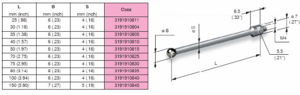 MARPOSS側(cè)桿根據(jù)客戶需求可以提供陶瓷和鋼兩種材質(zhì)的測桿。在選擇測桿的時候,應(yīng)盡可能使用最短的測桿當(dāng)必須使用長的測桿時,最好選擇陶瓷材料的測桿,盡可能避免使用延長測桿,特殊測桿可以特殊訂購。
