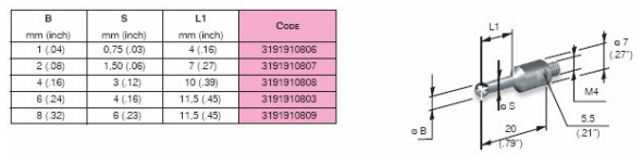 4、由鋼材料桿和硬質(zhì)合金球組成的20mm長直測桿。
