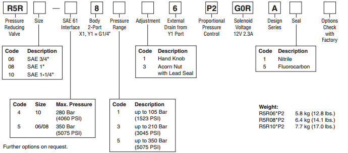 比例減壓閥R5R*P2都是基于機(jī)械調(diào)整序列R,機(jī)械先導(dǎo)閥和主級(jí)之間的附加比例單元允許連續(xù)壓力調(diào)節(jié)。最佳性能可與數(shù)字放大器模塊PCD00A-400來(lái)實(shí)現(xiàn)。該比例閥具有按比例電磁鐵連續(xù)調(diào)整的功能,可隨著機(jī)械的最大壓力調(diào)整,2端口體與SAE61凸緣,3種尺寸(SAE¾“,1”,11/4“),3級(jí)壓力。