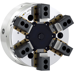帶有擺動(dòng)機(jī)構(gòu)的密封式6爪動(dòng)力車床卡盤,用于低形變夾持,維護(hù)間隔延長(zhǎng)了3倍